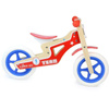 Zgrabny, drewniany rowerek biegowy, z regulowanym siodełkiem, odpornymi na przebicie oponami i modułem dźwiękowym na tylnym kole.