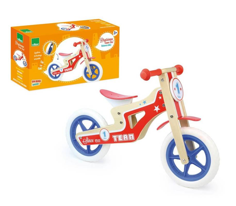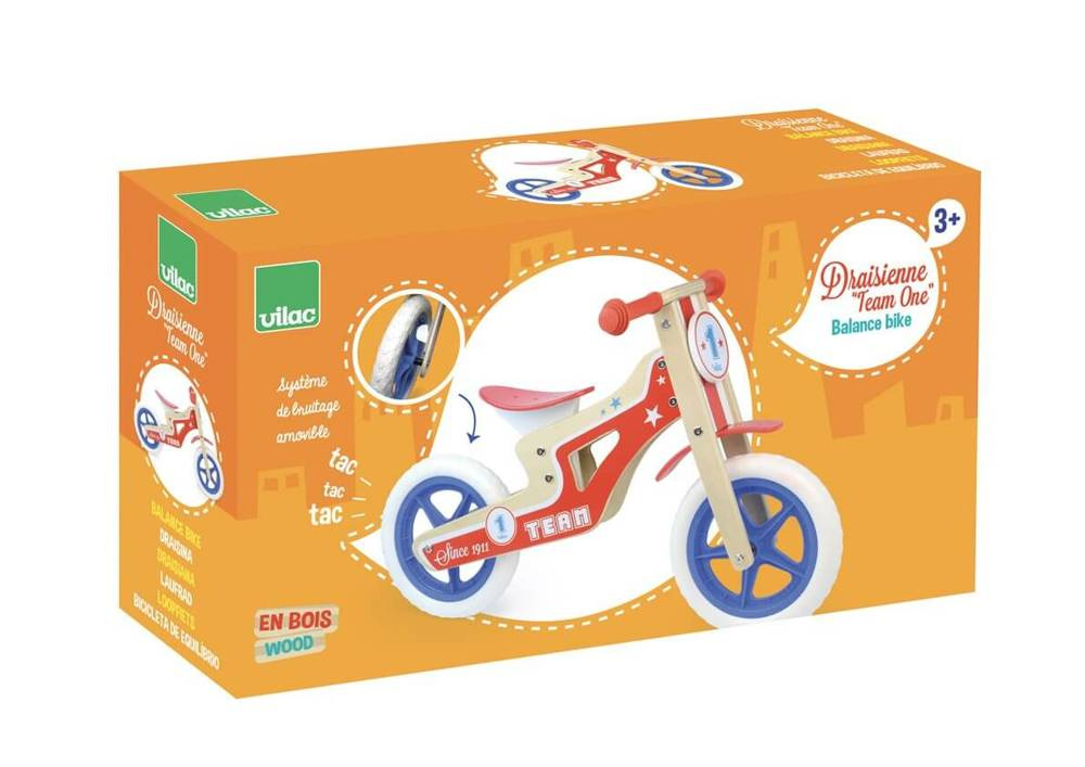 Rowerek został zaprojektowany i wyprodukowany przez znaną francuską markę Vilac od lat tworzącą tradycyjne zabawki dla dzieci.