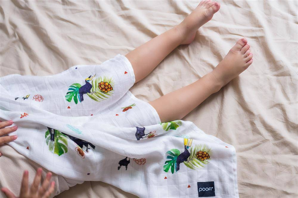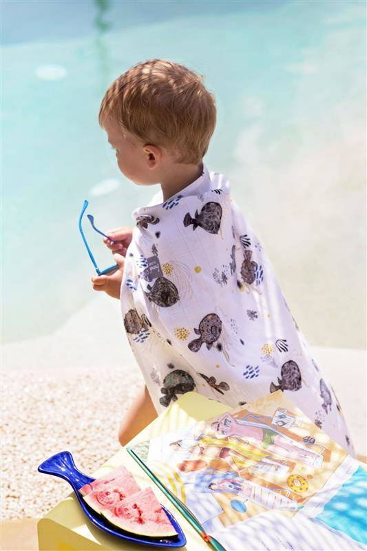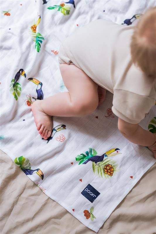 Otulacz bambusowy Tropical jest lekki i delikatny, dzięki dużemu rozmiarowi (120×120 cm) sprawdzi się w wielu sytuacjach. Jest wykonany z gładkiej, jednolitej tkaniny o strukturze podobnej do jedwabiu.